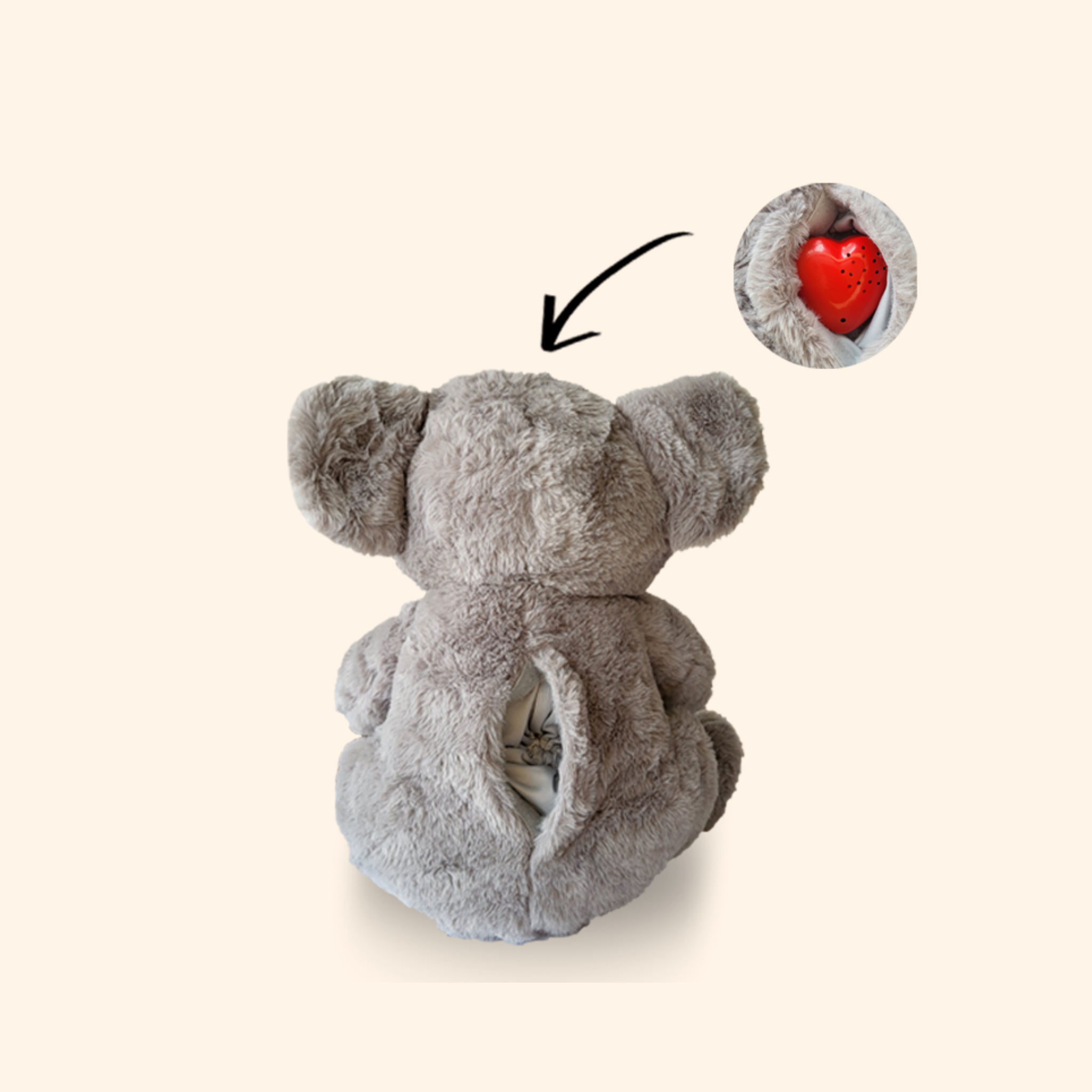 Wat deze knuffel speciaal maakt, is de opname- en afspeelfunctie waarmee je een persoonlijke boodschap kunt inspreken. In de knuffel zit een hartvormige geluidsmodule die jouw woorden op een warme manier laat klinken. Zodra er zachtjes in de knuffel wordt geknepen, wordt de boodschap afgespeeld. Zo wordt deze knuffel met stemopname een bijzonder cadeau dat raakt.